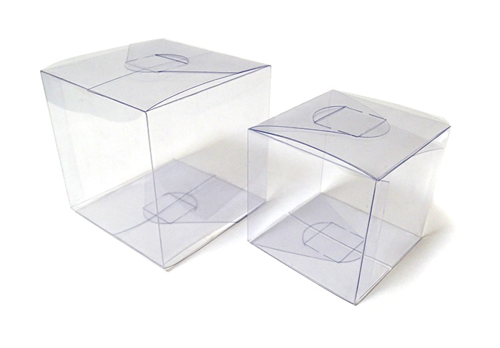 Cajas cubo de PVC transparentes.